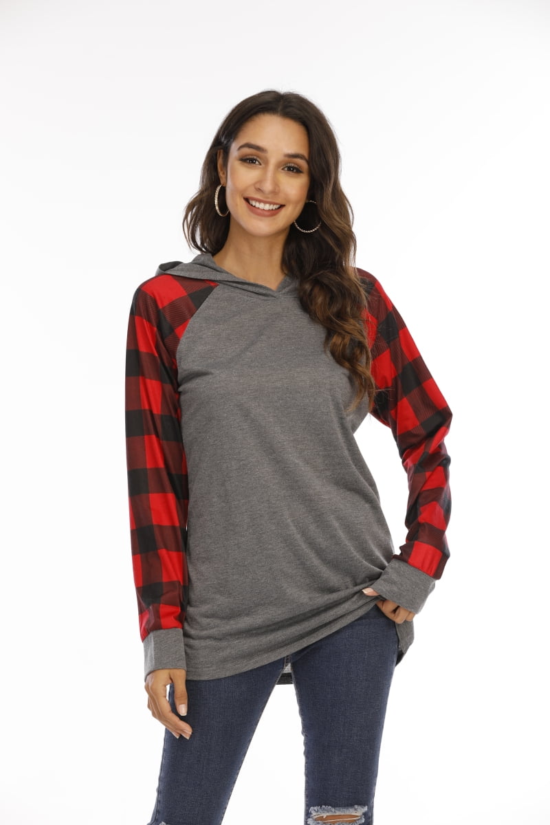 Womens Casual Long Sleeve Tops Buffalo Plaid Shirts Round Neck Pattern Raglan Pullover Gray Walmart Com